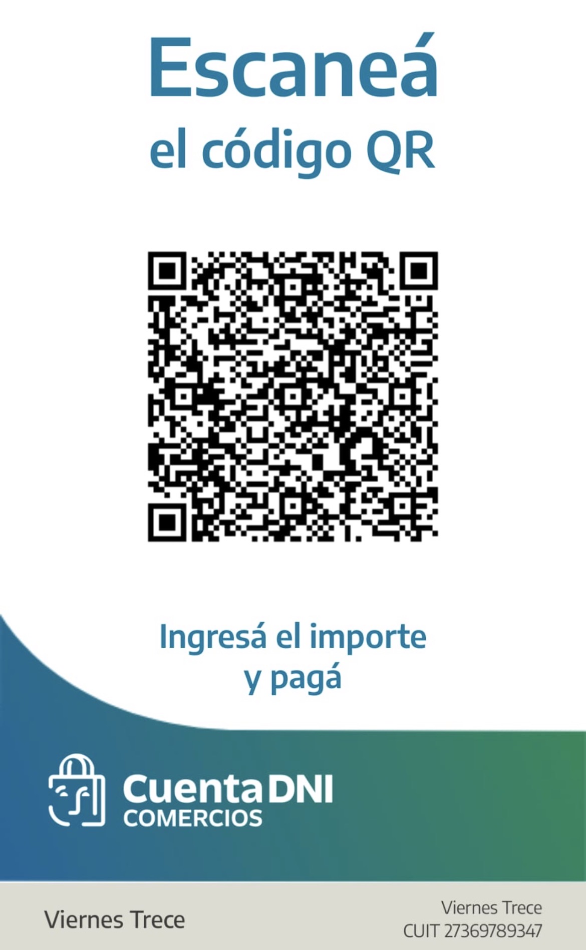 4️⃣ Escaneá el QR que aparece abajo en esta página con tu app de Cuenta DNI y pagá el monto total de la compra.