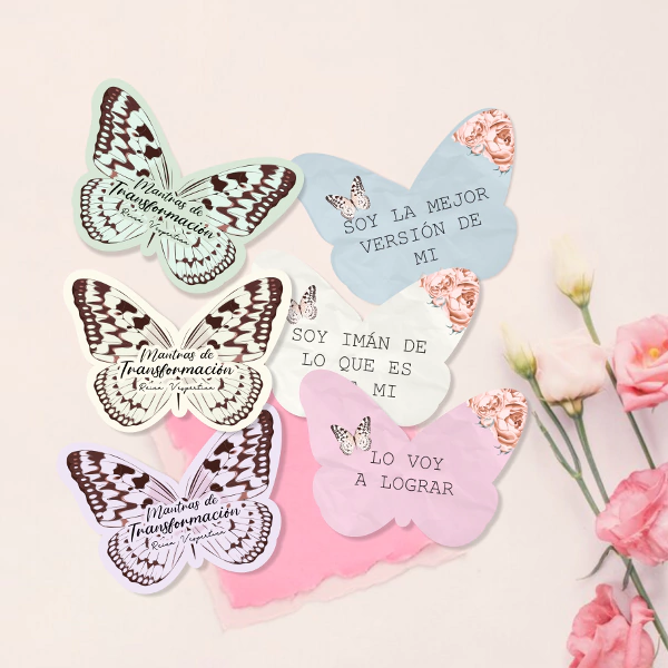 El Oráculo Mantras de Transformación es un conjunto de cartas en forma de mariposa, diseñadas para elevar tu energía y llenarte de inspiración. Cada carta contiene un mensaje corto y poderoso, como "donde estoy yo está la suerte" o "soy imán de las cosas buenas", que te ayudará a enfocar tu mente en pensamientos positivos y a atraer lo mejor que la vida tiene para ofrecerte.